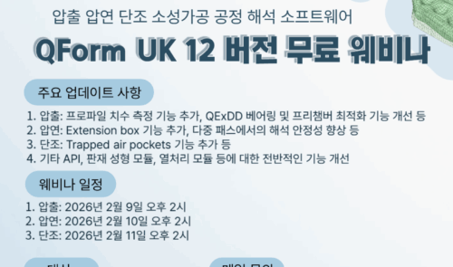 QForm UK은 단조, 압연, 압출, 링롤링 등 다양한 금속 성형 공정의 시뮬레이션 및 최적화를 수행할 수 있는 소성가공 공정해석 전용 소프트웨어입니다. 추가적으로 미세구조 예측, 열처리, 압출 금형 / 압연 공형 / 단조 프리폼 금형 자동화 설계 소프트웨어, 사용자 서브루틴과 같은 추가 특수 모듈을 제공하고 있습니다.